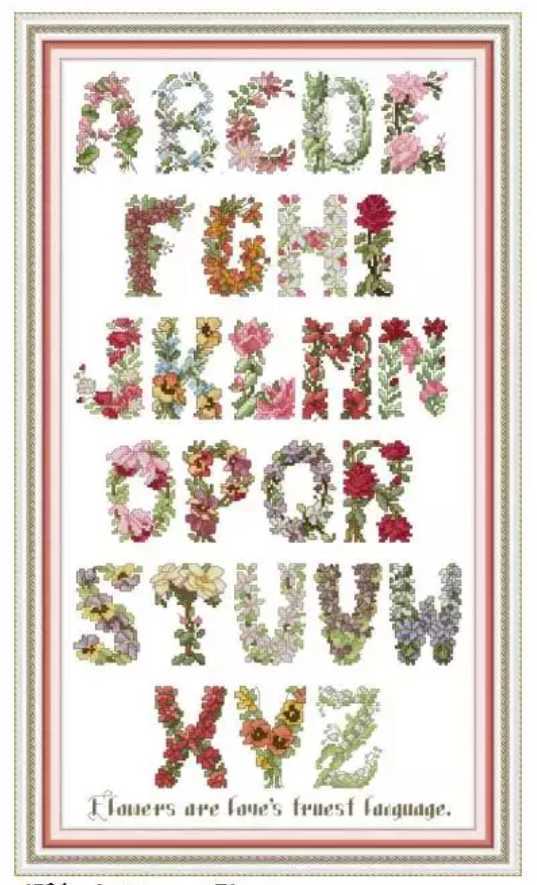 > クロスステッチキット アルファベットフラワー 14CT 布に図案印刷あり 花 薔薇 34×59cm