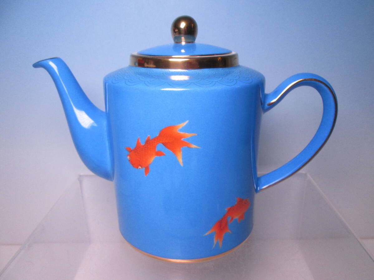 > ☆上海灘 Shanghai Tang シャンハイタン 金彩 ブルー赤い金魚文 ティーポット 箱無 香港ブランド