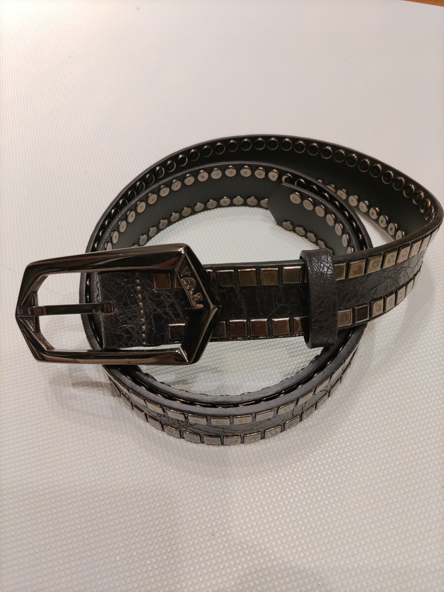 - 【新品・未使用・スピード配送】EMPORIO ARMANI エンポリオアルマーニ スタッズ レザーベルト ブラック メイドインイタリー サイズ56