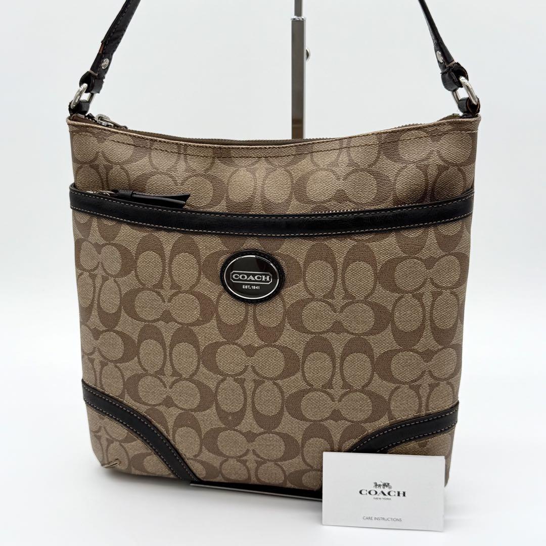 - 【良品】COACH コーチ シグネチャー ショルダーバッグ サコッシュ 斜めがけ クロスボディ レザー PVC ブラウン レディース AG790908I