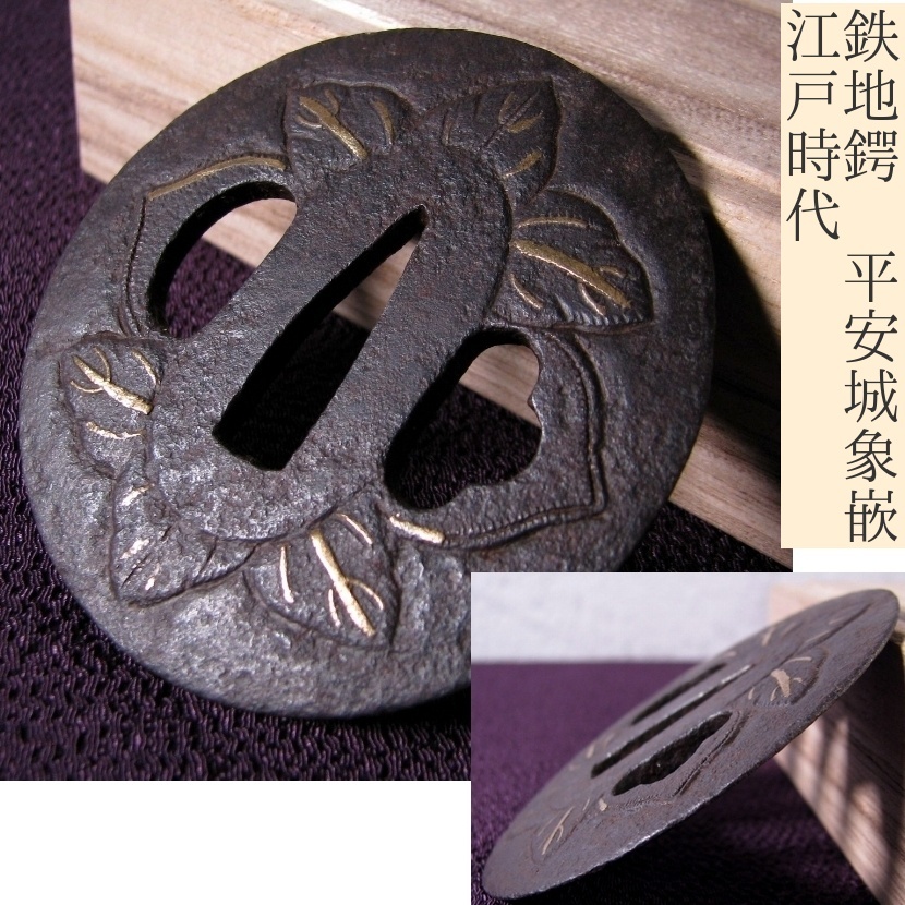 - 時代武具 鉄地鍔 平安城象嵌 江戸時代/鐔/25d062