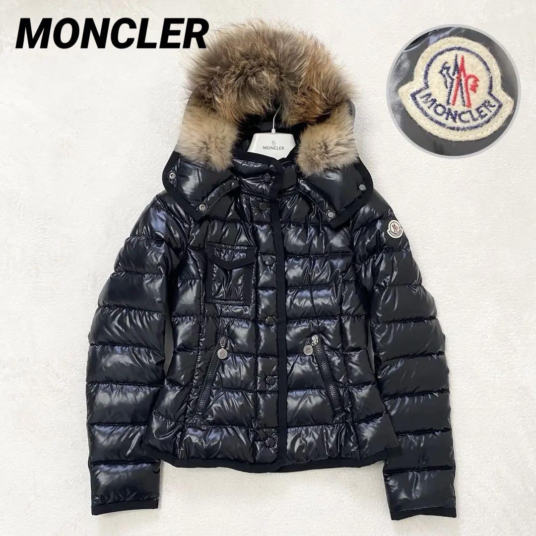 > 【美品】MONCLER モンクレール ARMOISE アルモワーズ ダウンジャケット フード ファー付 ブラック 黒 2WAY ロゴ サイズ00 光沢 上品