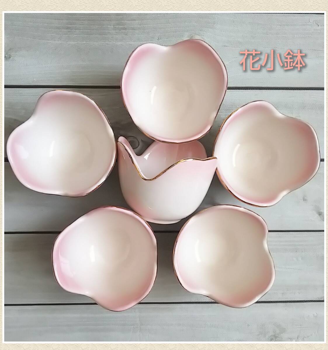- 割山椒珍味 渕金ピンク 花小鉢 6点セット 磁器 一品料理などに