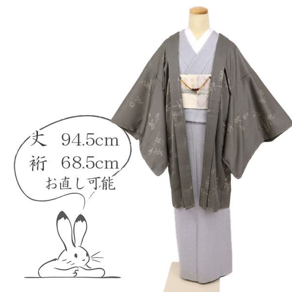 - 【羽織】 新品 和装コート 細やか縞に鳥獣戯画文様 黒 化繊着物上 CB3-4