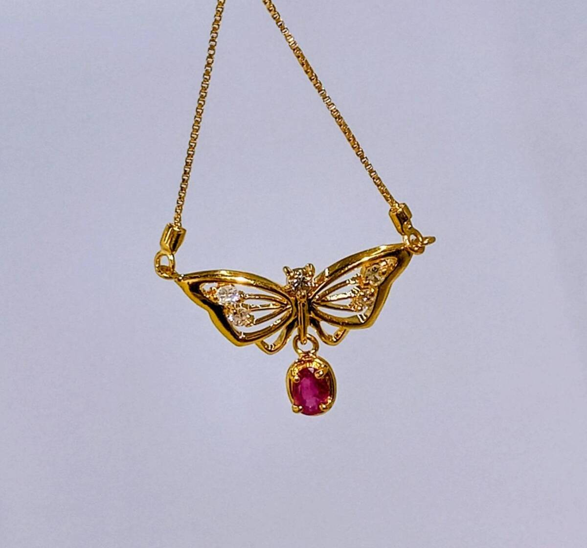 > K18 YG 2.6g ルビー 0.21ct ダイヤ 0.12ct チョウチョ型 ベネチアン ネックレス 40cm