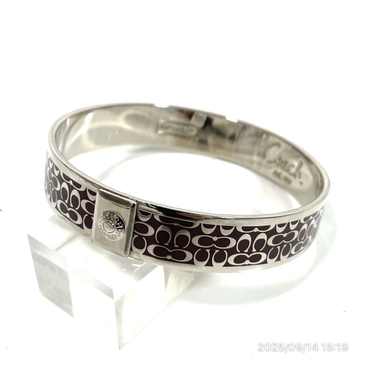 - 美品 COACH コーチ シグネチャー ブランドロゴ シルバー ×ボルドー系カラー バングル ブレスレット アクセサリー 装飾品