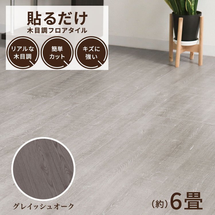 - 【グレイッシュオーク】木目調 フロアタイル 約6畳 72枚セット 貼るだけ シール 接着剤不要 リノベーション 床材 DIY リフォーム