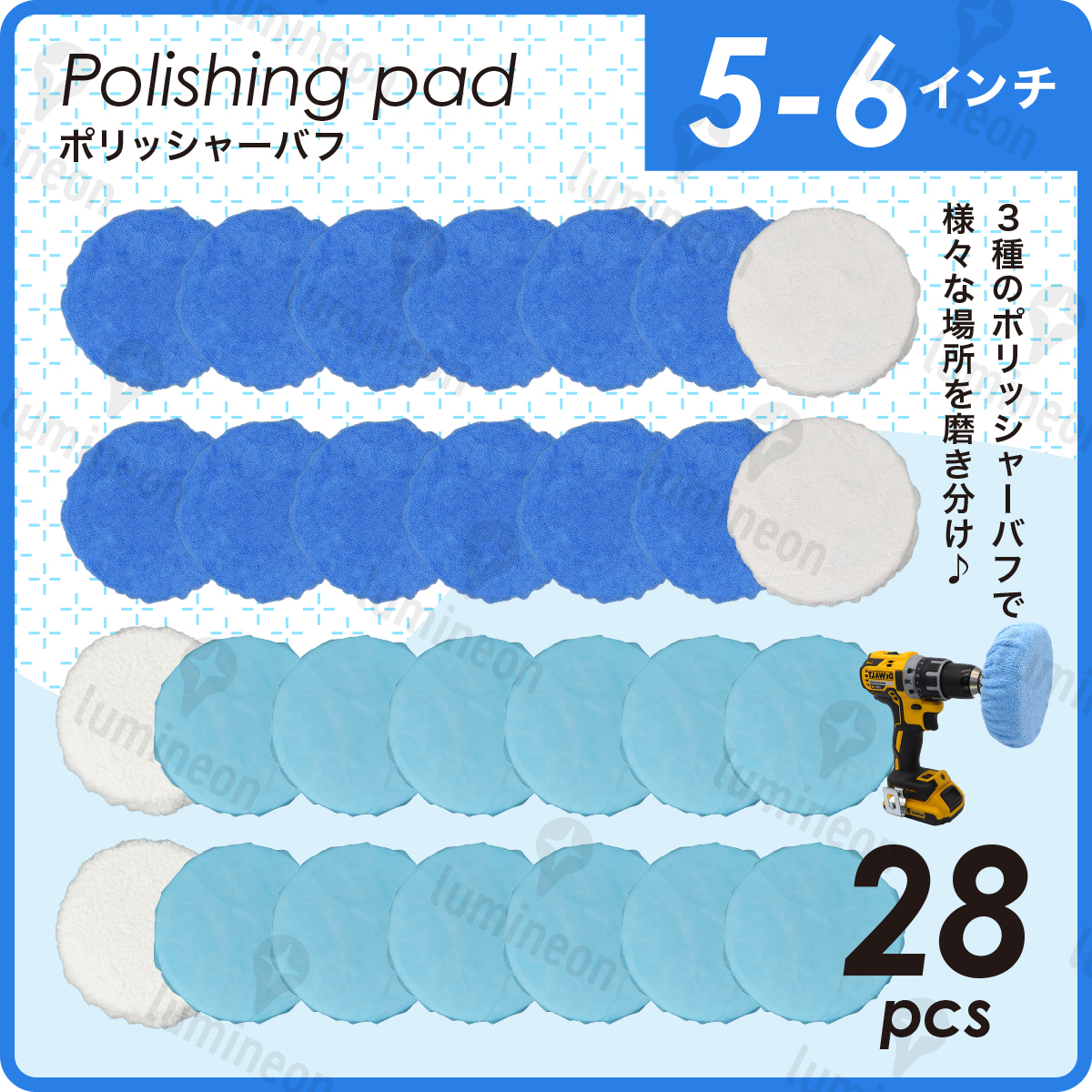 - 洗車 カー ポリッシャー バフ ミニ 小型 ワックス 車 用 マイクロファイバー クロス 傷消し 研磨 剤 ボディ用 ウール パッド 125mm g303b 2