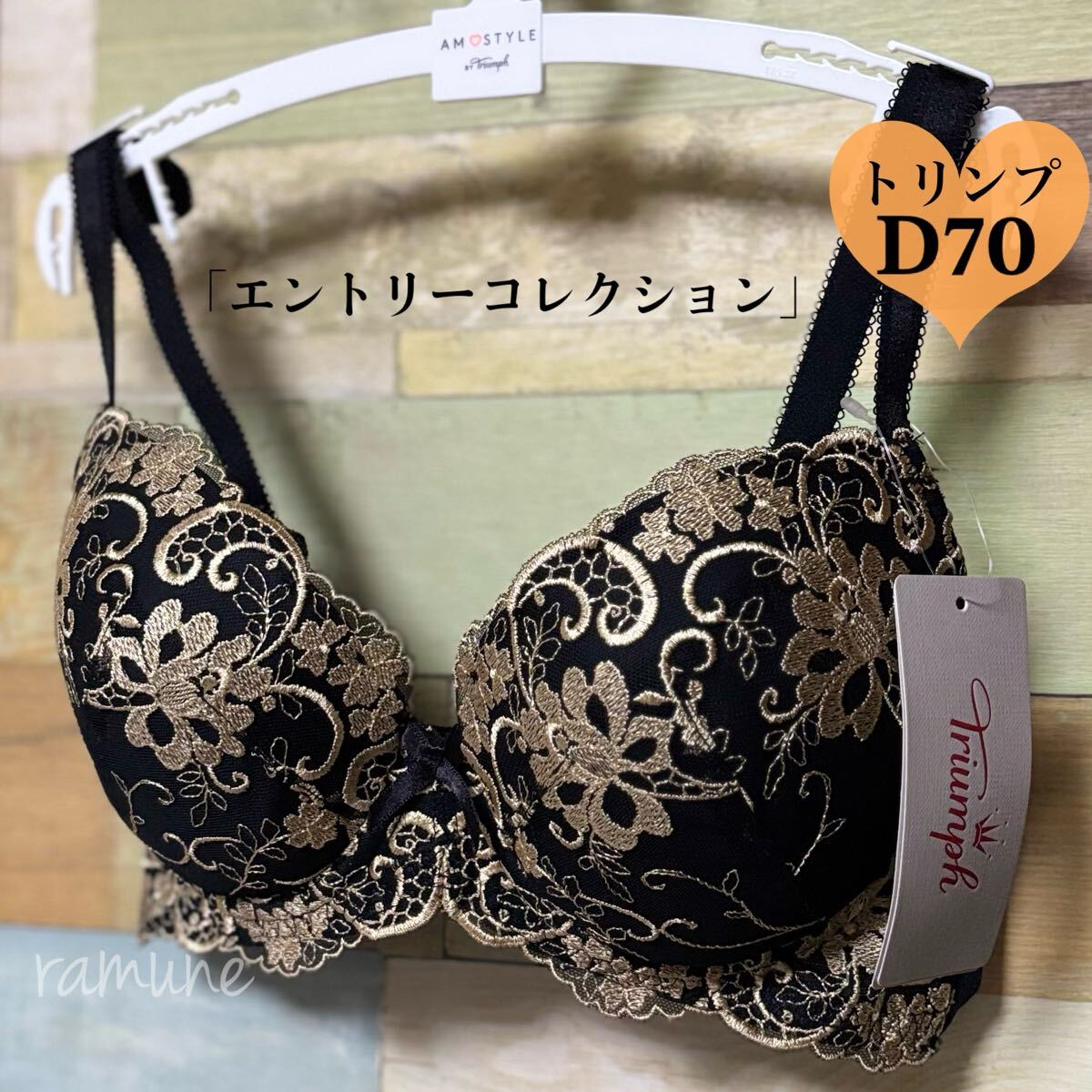 > トリンプ*D70 ブラック*エントリーコレクション 新品タグ付き Triumph ブラジャー パッド付き 刺繍 寄せ上げブラ 谷間メイク 定価3300円