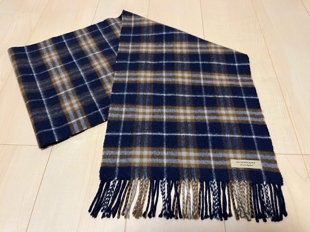 - BURBERRY バーバリー マフラー カシミア100% ヴィンテージチェック ネイビー系 送料無料!!!