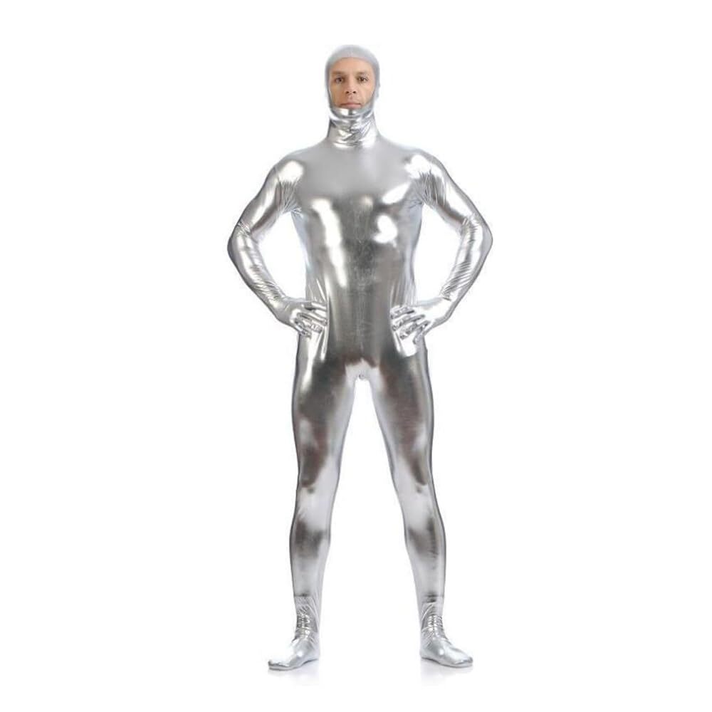 - 全身タイツ コスプレ ハロウィン 衣装 仮装 男性 女性 コスチューム 大人 顔出し 変装 ストレッチ 着ぐるみ シルバー XL