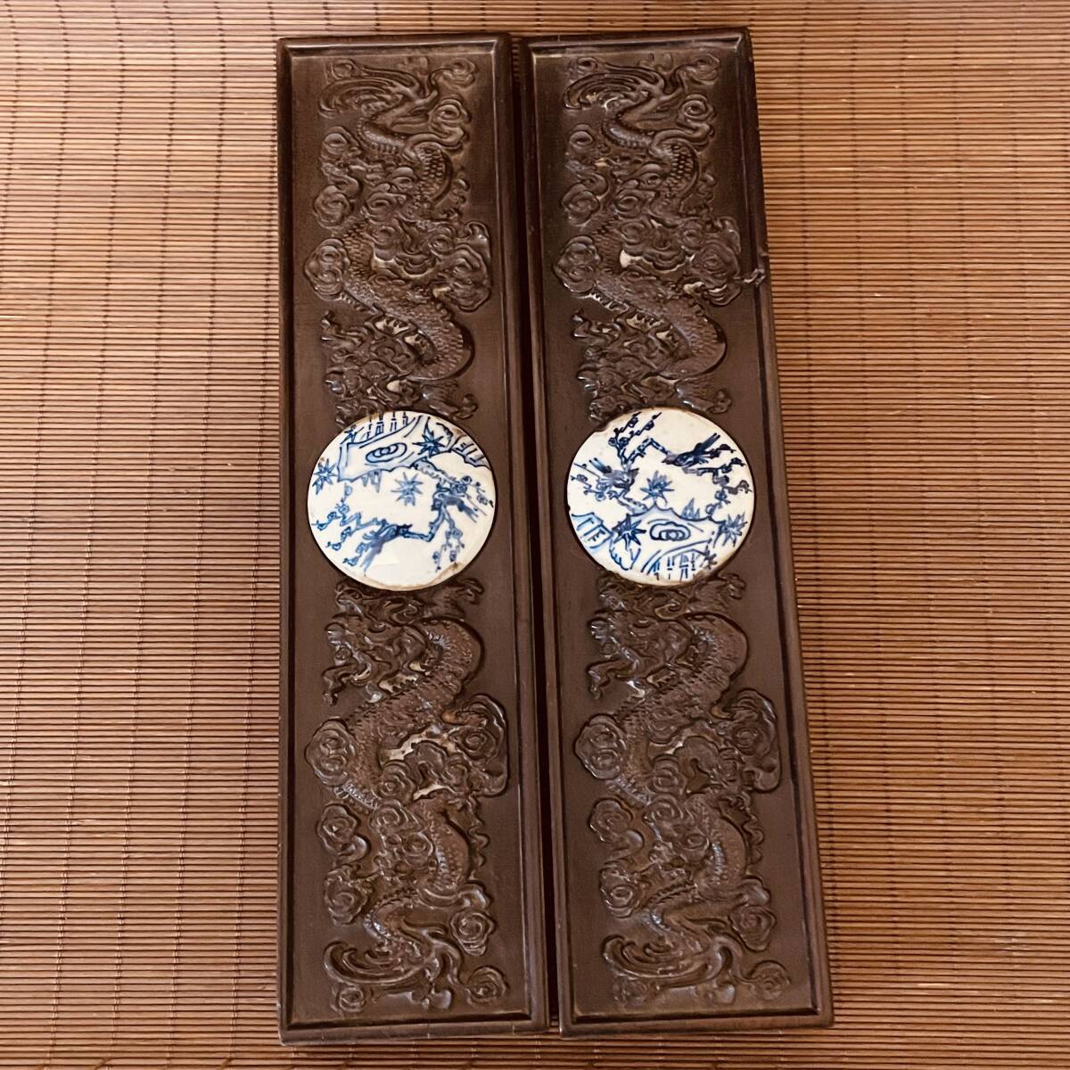 - £‰ 文房具 ‰£ 希少 檀木製 龍紋 花鳥図 文鎮 鎮紙
