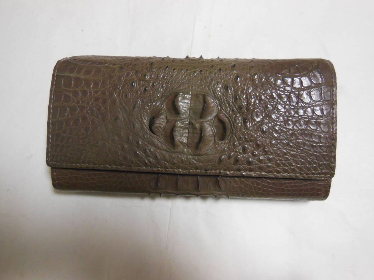 - 高級エキゾチックレザー男性用長財布・小銭入れあり クロコタイル革 ベージュ 送料無料