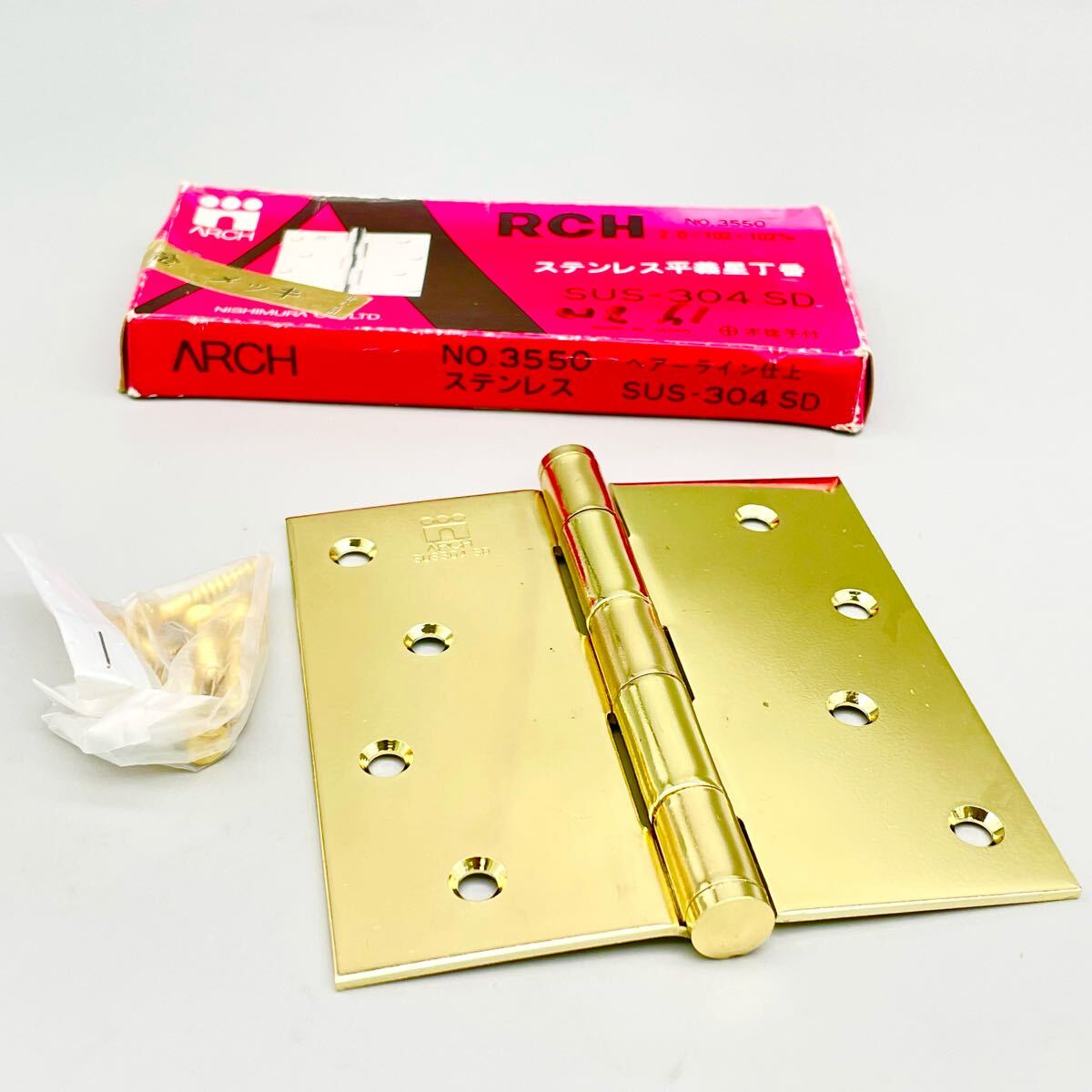 - [送料全国一律360円] アーチ ステンレス 平義星丁番 3550 2×102×102mm ゴールド 蝶番 ドア 建具 ヒンジ ARCH 金物屋 在庫 まとめ 未使用