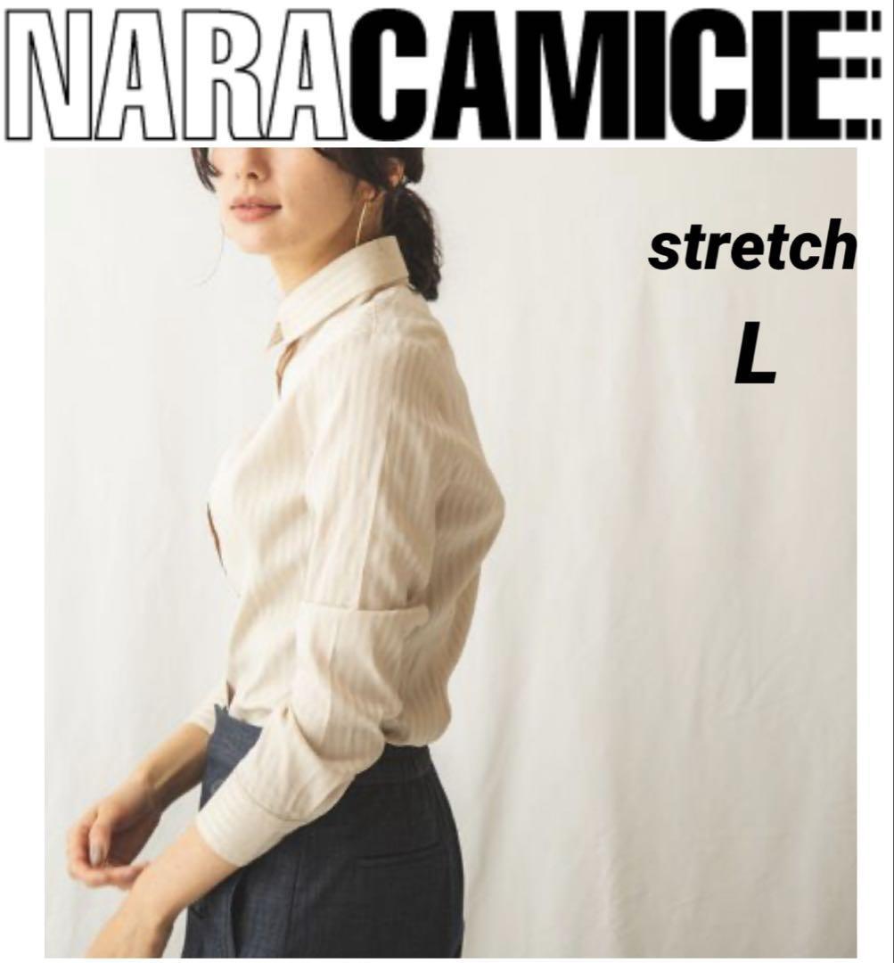 - NARACAMICIE ナラカミーチェ サテンストライプ スーパーストレッチ 長袖シャツ L ベージュ