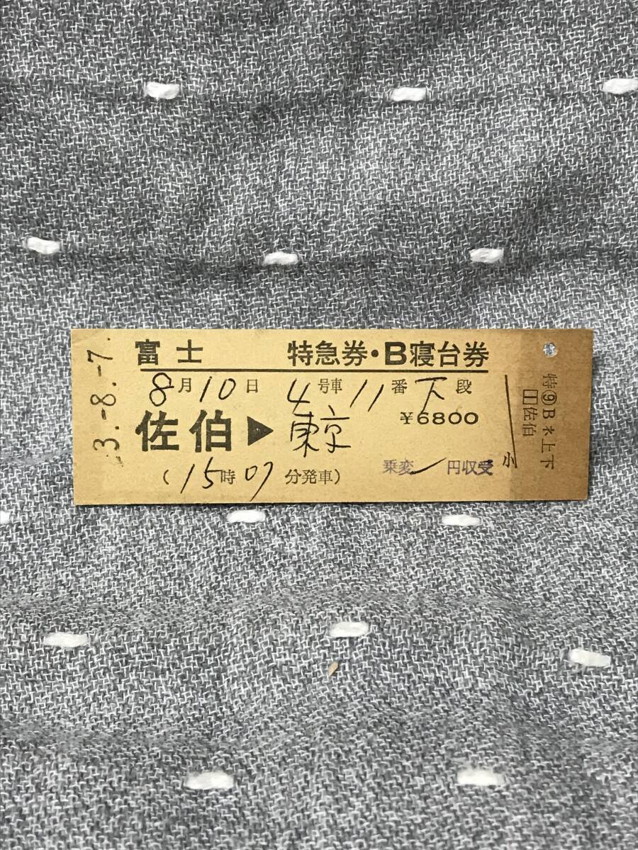 > 国鉄時代 寝台特急 「富士」 特急券・B寝台券 乗車日 昭和53年(1978年)8月10日 佐伯駅~東京駅間 当時価額6800円
