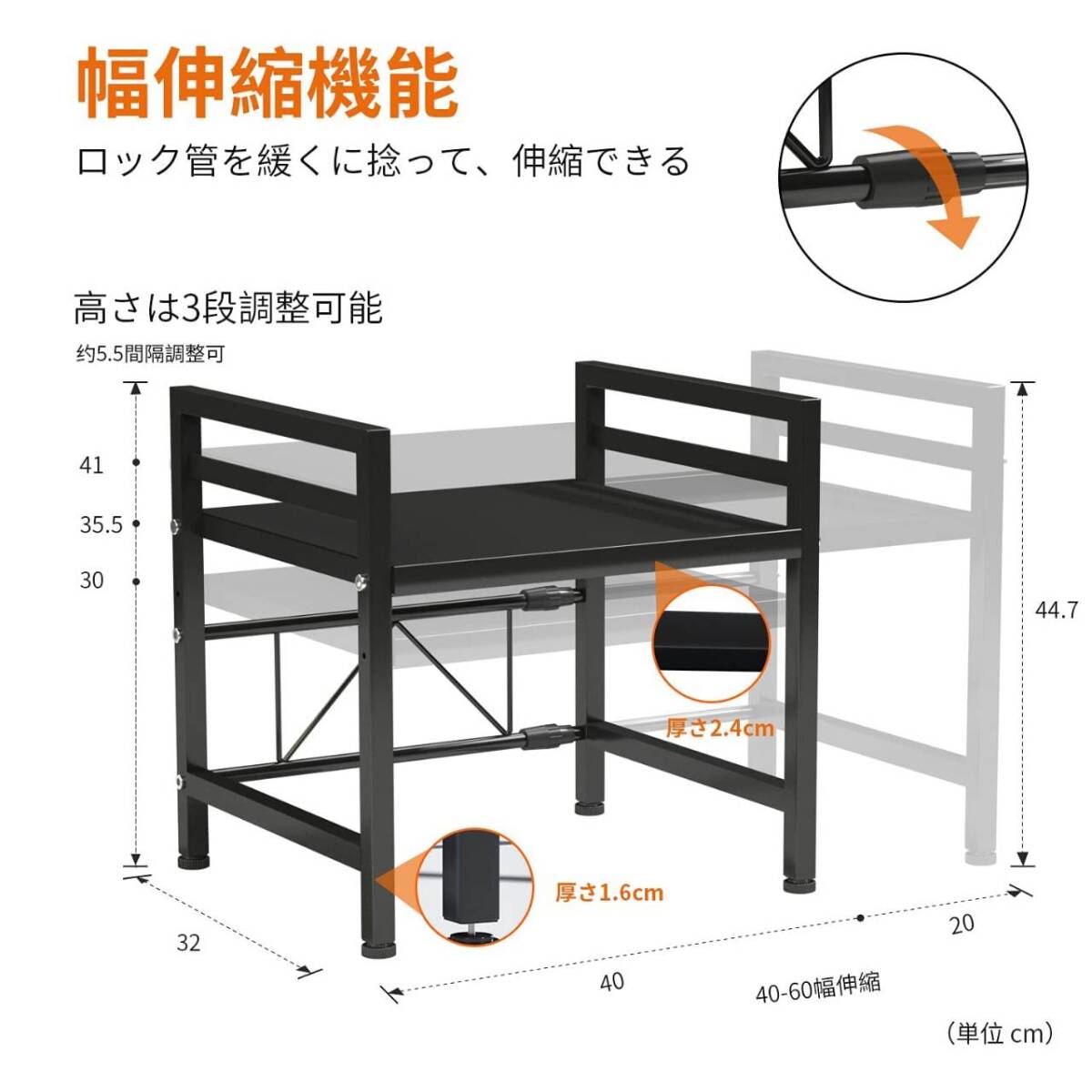 - 耐荷重70kgの頑強な電子レンジラック レンジ台 棚板高さ調節可