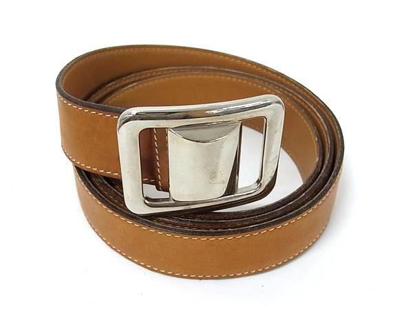 > 1円 HERMES エルメス レザー シルバー金具 ベルト □C刻印 表記サイズ 105 レディース メンズ ブラウン系 FU2153