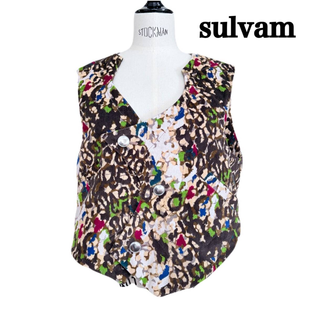 - ★ sulvam サルバム LEOPARD レオパード マルチカラー 総柄 コーデュロイ 変形 ベスト ジレ アユニD着用 美品 Sサイズ SK-V01-210