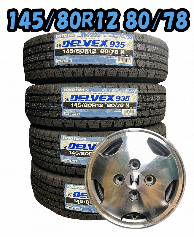 - 2025年製 145/80R12 80/78N TOYO DELVEX 935 新品 スタッドレスタイヤ/中古アルミホイールセット【組み付けバランス無料】