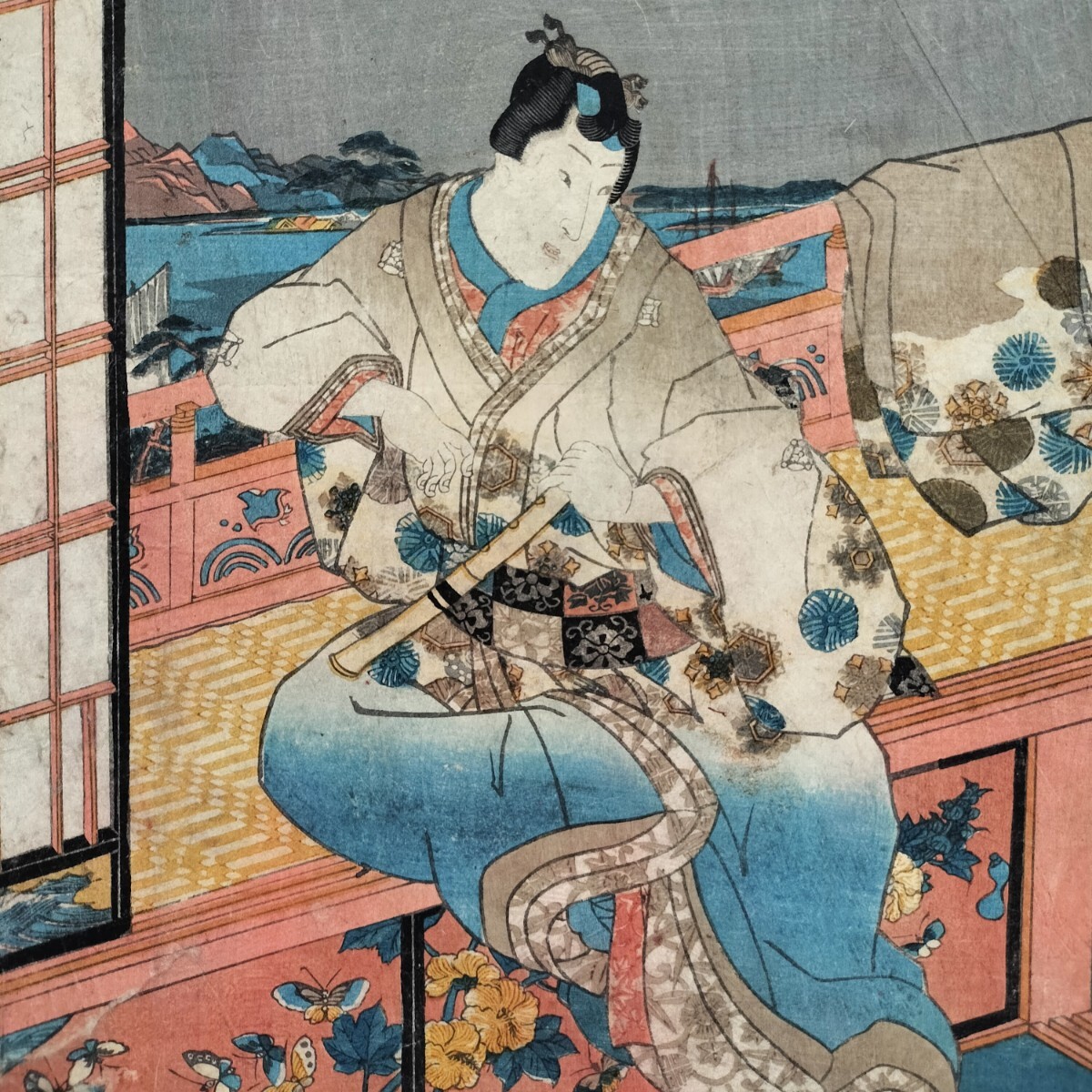 - 江戸期/真作 歌川国輝「雪月花」本物浮世絵木版画 源氏絵 錦絵 大判 裏打ち