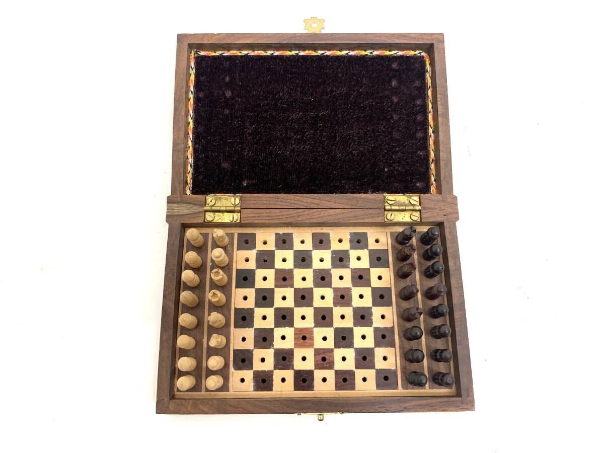 - ◆269 木製 ミニチュア 携帯用 チェス トラベルチェス セット ボードゲーム ヴィンテージ