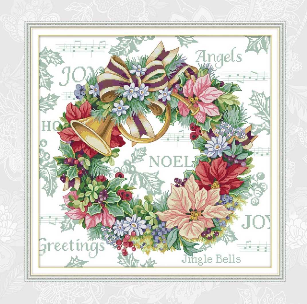 > クロスステッチキット クリスマスリース ポインセチア 14CT 刺繍キット 布に図案印刷なし 54×54cm