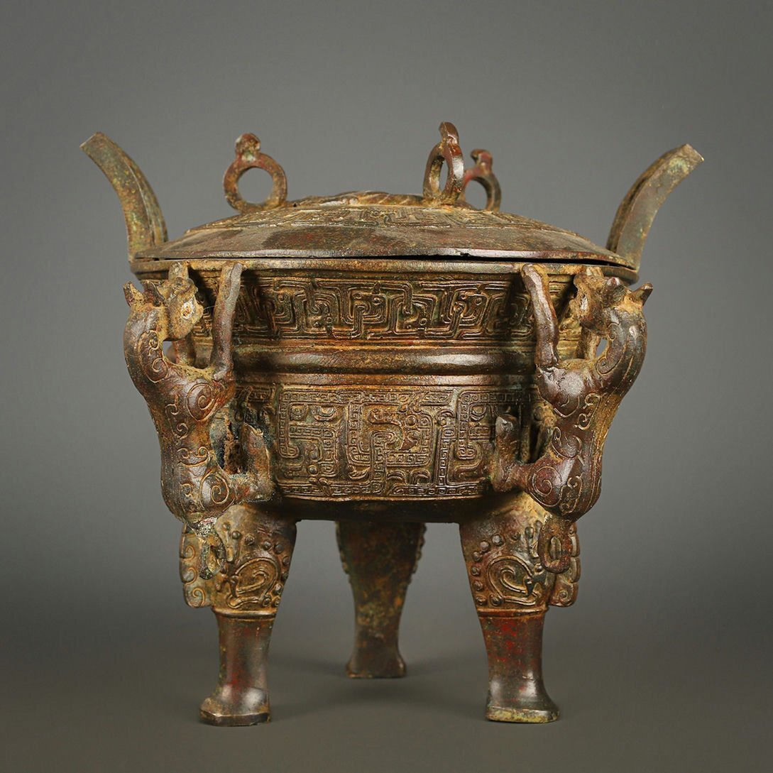 - ◆羽彰・古美術◆Y508西周時代 青銅器 青銅四虎鼎 細密細工★古置物★古賞物★古擺件★蒐集家放出★唐物