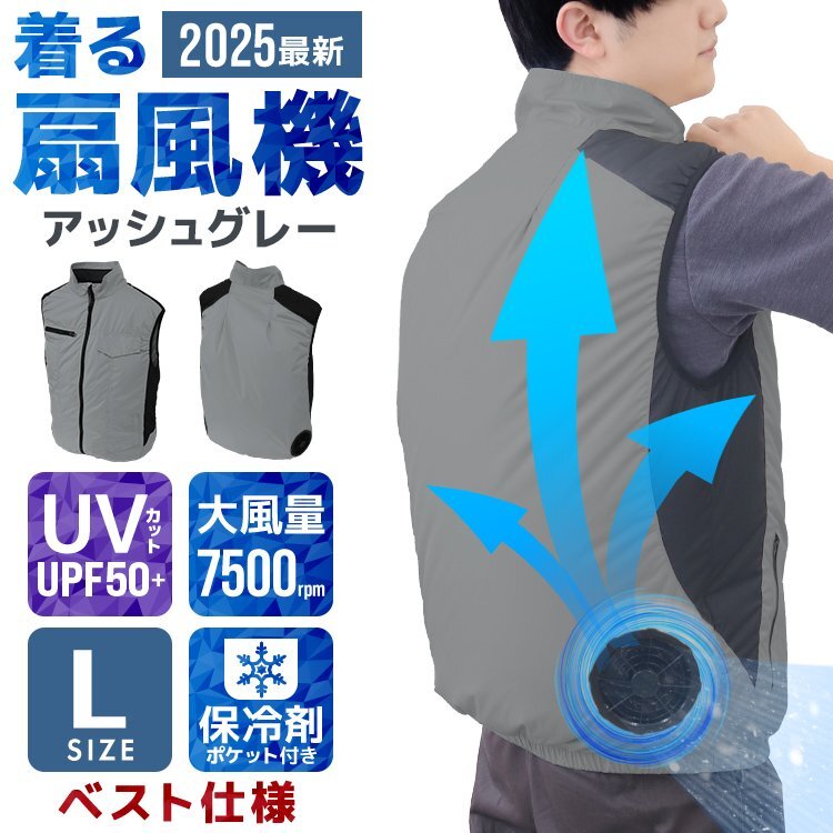 - 【ベスト仕様/L】ファン付 空調ウェア 洗える クール 作業ウェア 風量3段階 3D立体風循環 作業服 熱中症対策 男女兼用 [アッシュグレー]