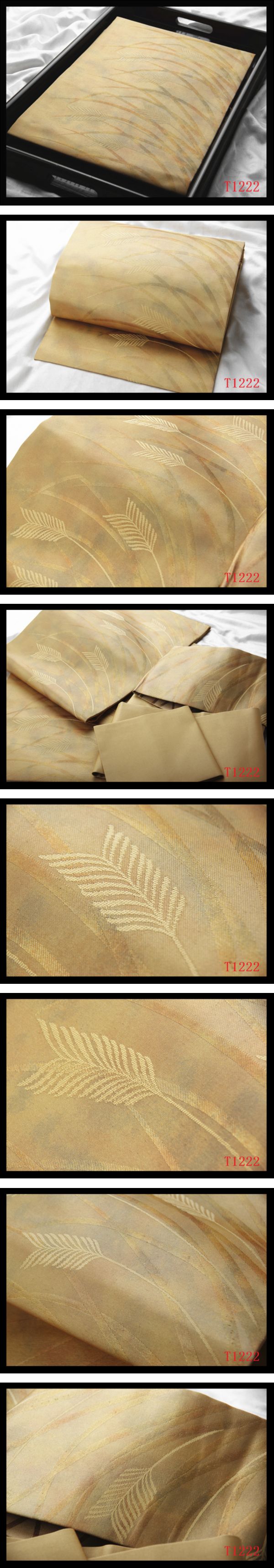 - 蔵【T1222】厳選美品 枯草色地 気品豊かに 正絹高級美術名古屋帯 ◇検簪着物袋帯和装小物帯締め