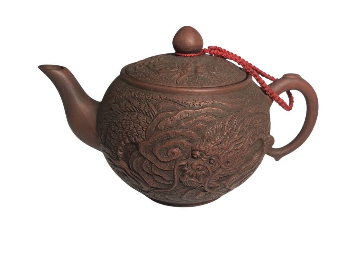 ・龍鳳彫刻 龍 鳳凰 紫砂壺風 急須 茶壺 中国美術 茶器 林記■堂 工芸品 中古