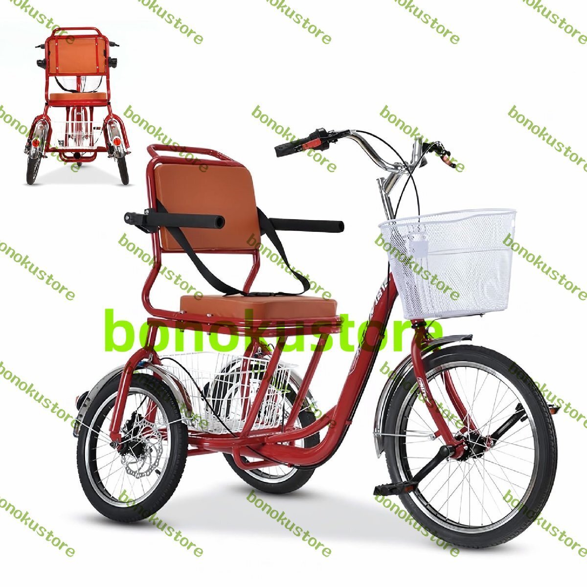 - 三輪自転車 高齢者用 大人用 転ばない自転車 1人掛け 20インチ 三輪クルーザー 前輪駆動 前ペダル自転車 駐車ロック付き ベル/カゴ付き