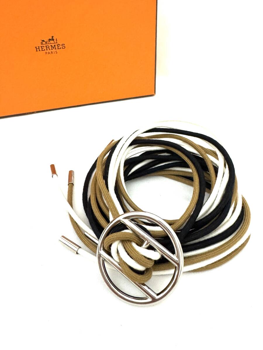 > 7I2104【本物保証】エルメス サッシュ ベルト ネックレス H モチーフ シルバー 紐 ブラック ホワイト ブラウン レディース メンズ HERMES