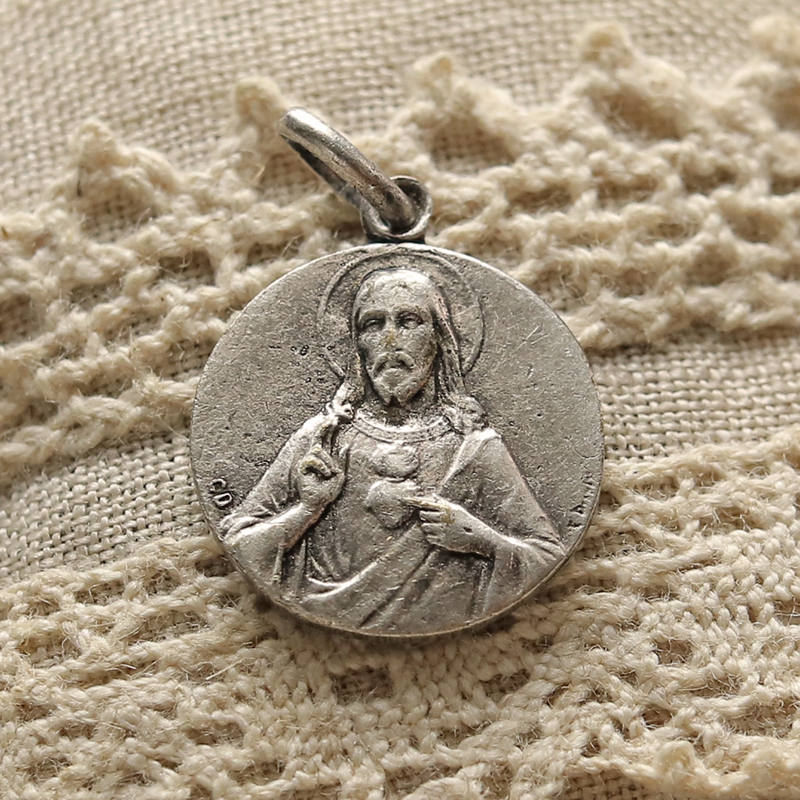 - フランス アンティーク【キリストの聖心】メダイ パリ モンマルトル サクレ クール寺院/メダル ロザリオ キリスト 聖母 マリア 教会/5-H