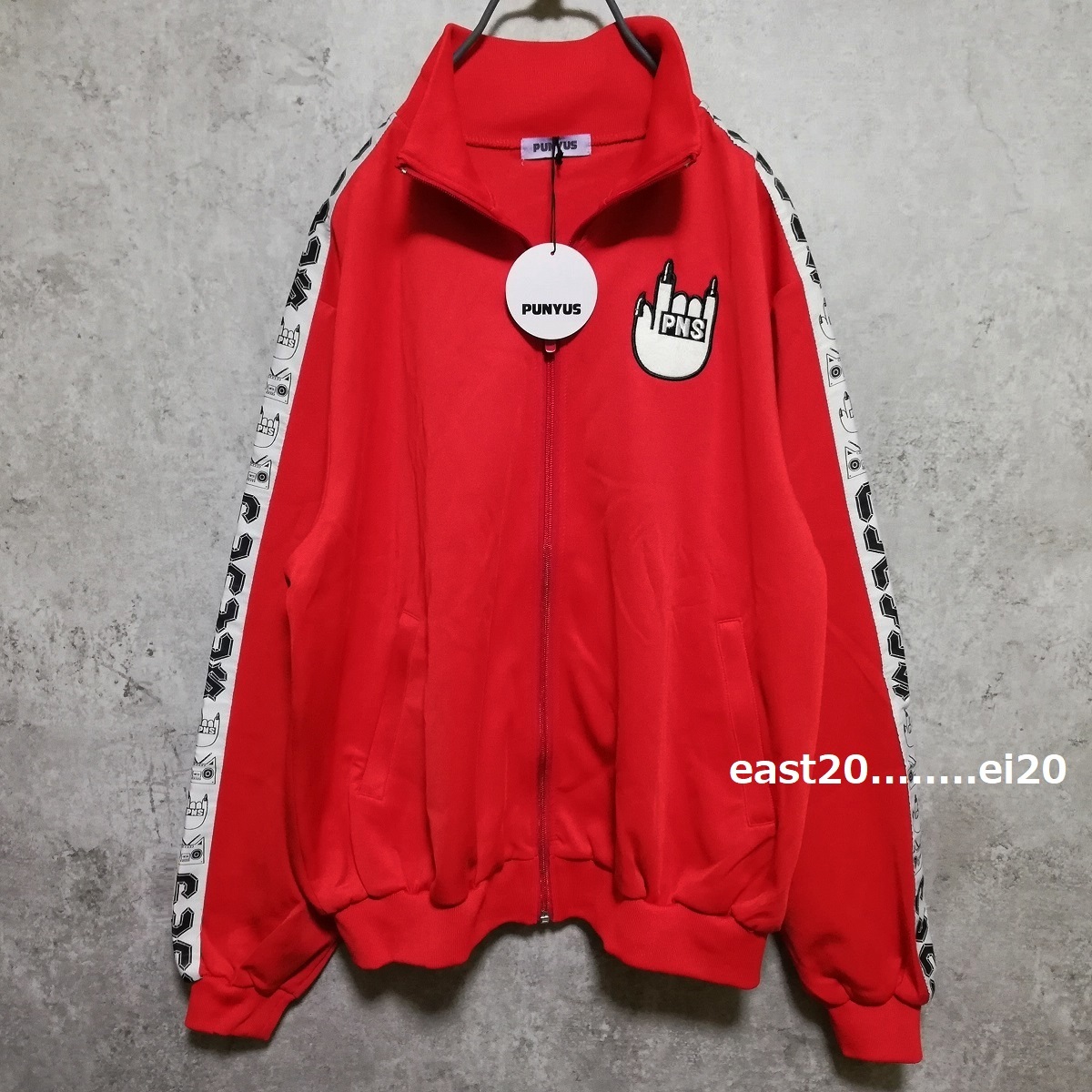 > 新品 PUNYUS プニュズ 菱沼彩子 デザイン イラスト ロゴ ライン ジャージ トラック ジャケット 3 赤 未使用 ストリート 渡辺直美 送料無料