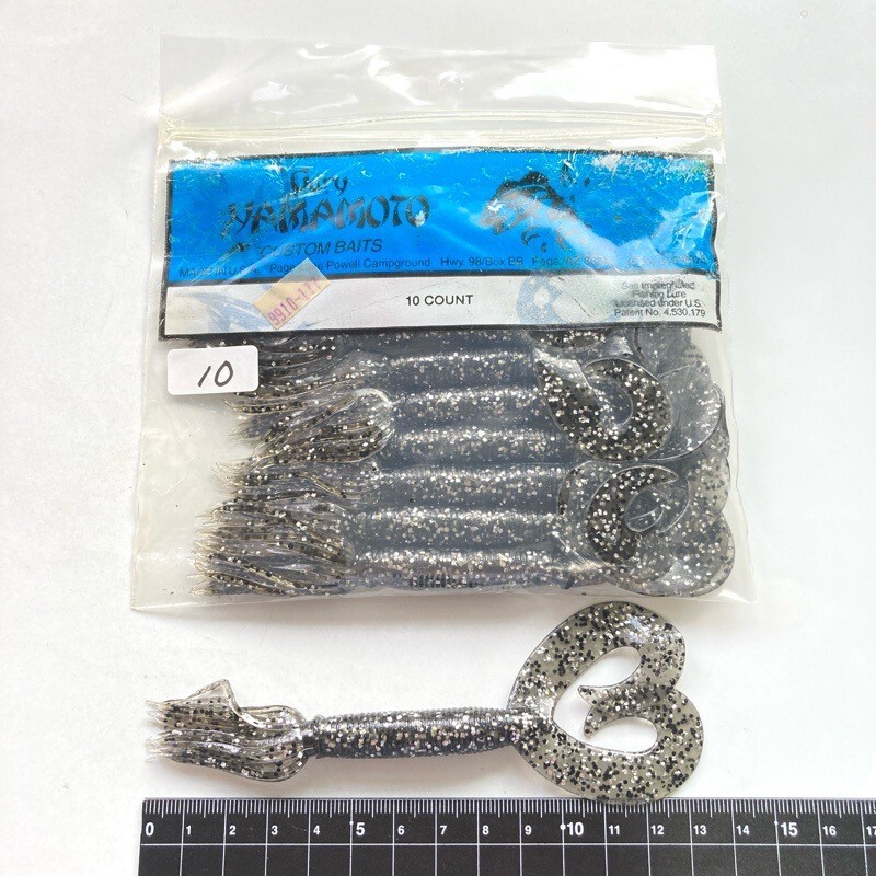 - 815026 新品 ゲーリヤマモト ビッグダブルテール フラグラブ 10本 GARY YAMAMOTO #177 スモーク/シルバー&ブラックフレーク オールド品