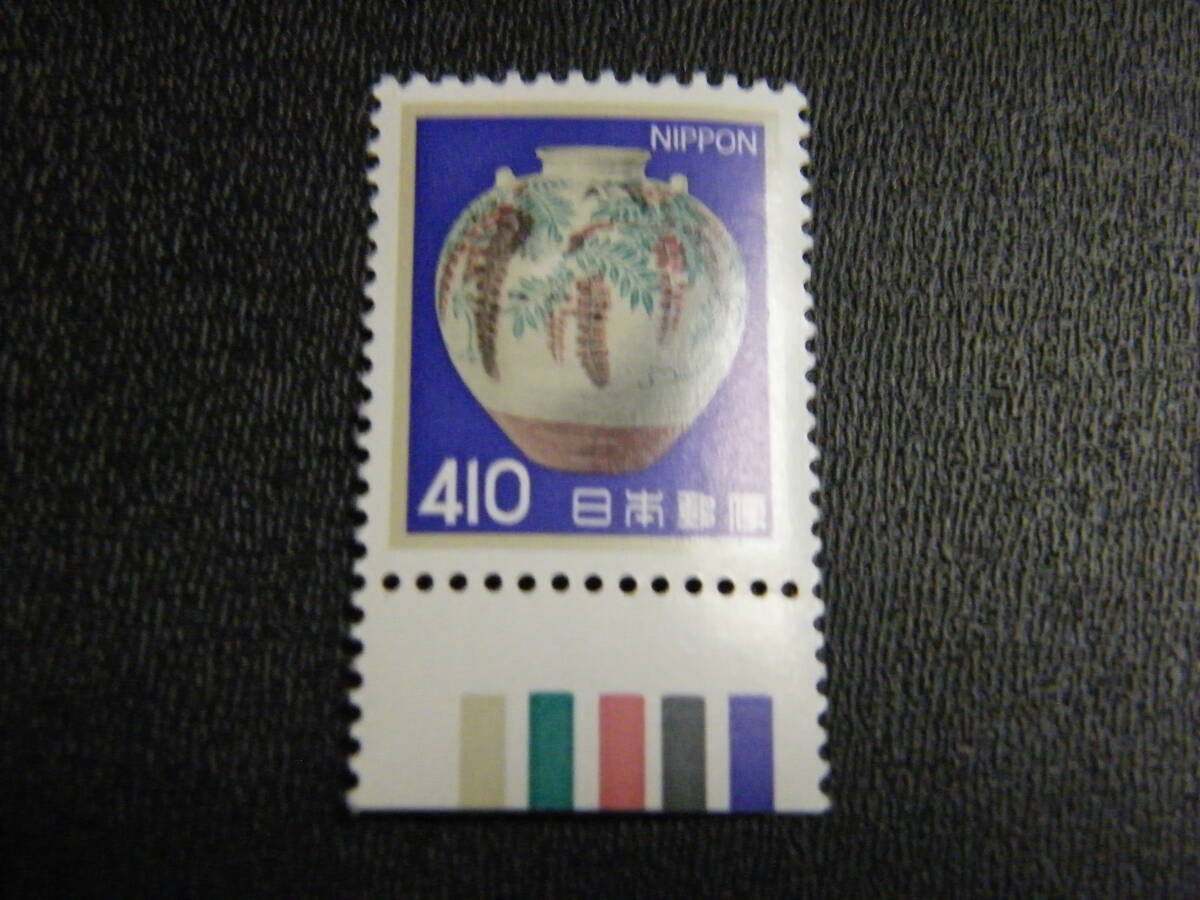 - 色絵藤花文茶壺 410円 カラーマーク下 未使用 1980年シリーズ(CM付)