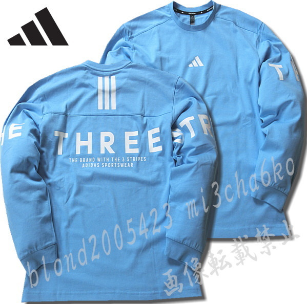> ■新品【adidas】アディダス ゴルフに最適 背面BIGロゴ ルーズフィット 速乾生地 クルーネック 長袖シャツ■BU/2XL(3L)