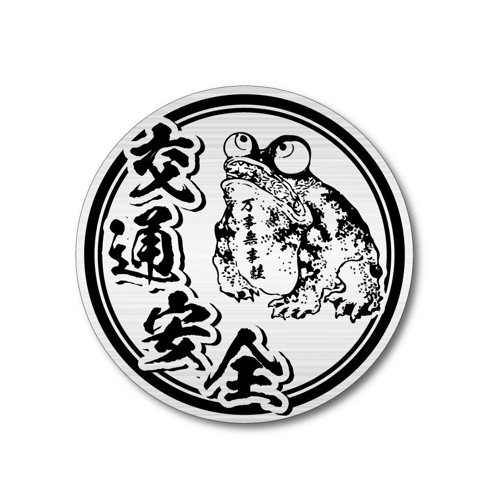 - (ヘアライン素材) 交通安全ステッカー ((シルバー)) 万事無事蛙 大 丸型 銀 15cm デコトラ 妖怪 かえる カエル 和