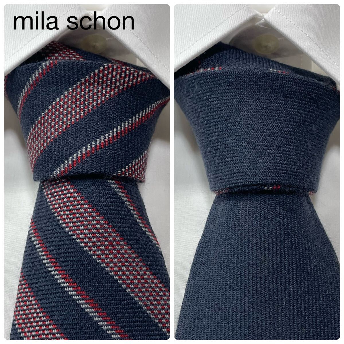 - mila schon ミラショーン 切替 ストライプ 無地 2way ウール ネクタイ イタリア製 ネイビー レッド ホワイト TG2883