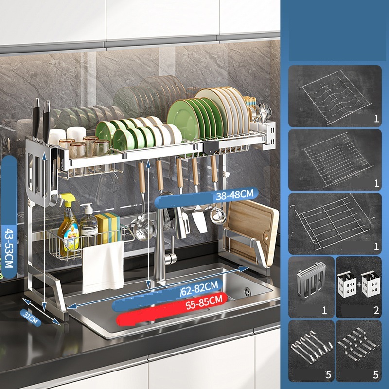 - シンク上 伸縮式 水切りラック ステンレス 調整可能 大容量 滑り止め 省スペース キッチン 台所用品ホルダ BOX伸縮式 場所を取らない