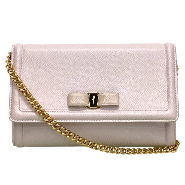 > フェラガモ AU-22 C940 ヴァラ ショルダーバッグ チェーンショルダー クラッチ 2way リボン レザー オフホワイト Salvatore Ferragamo