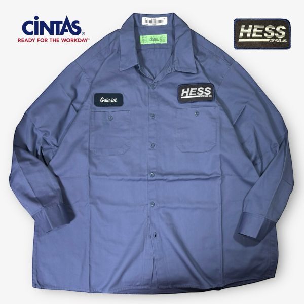 > ★BIGサイズ★HESS SERVICES.INCロゴワッペン★CINTAS 長袖ワークシャツ size3XL アメリカ COTTON100% 古着 クリーニング プレス済み 2507
