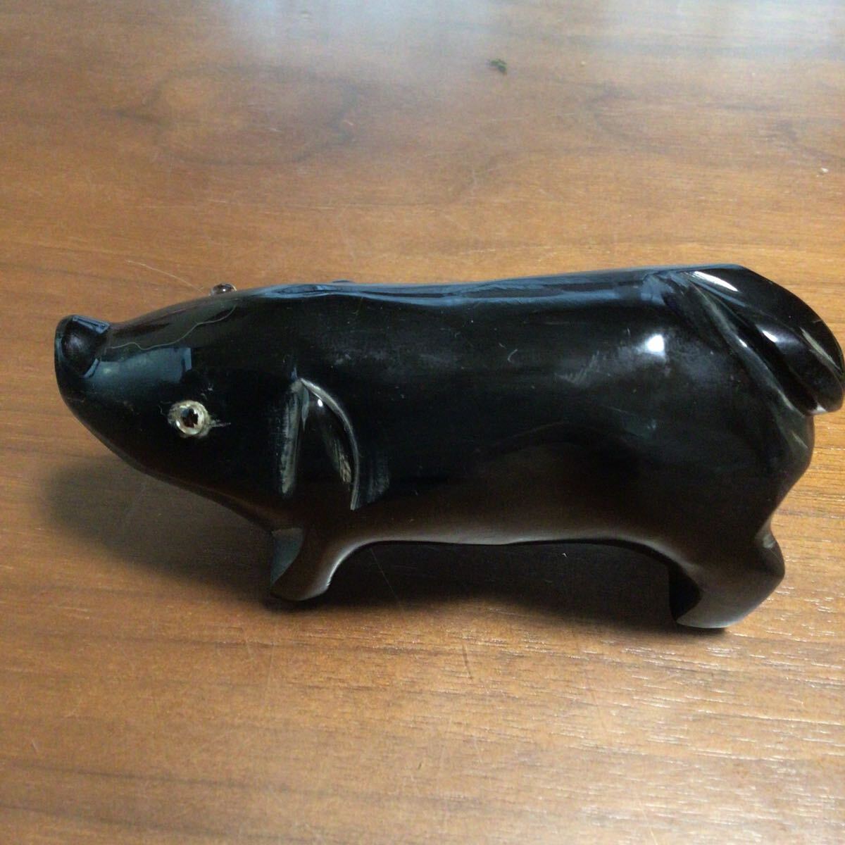 - 置物 オニキス製 豚 天然石 パワーストーン 幸運 ラッキー 金運 お守 猪