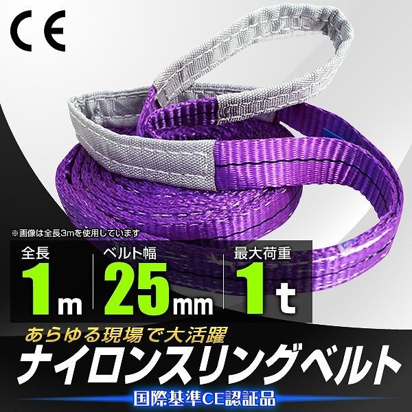 > 【送料無料】スリングベルト 耐荷重1000kg 幅25mm×長さ1m ナイロン ベルト スリング 吊りベルト 荷吊りベルト 資材 玉掛け 牽引 新品