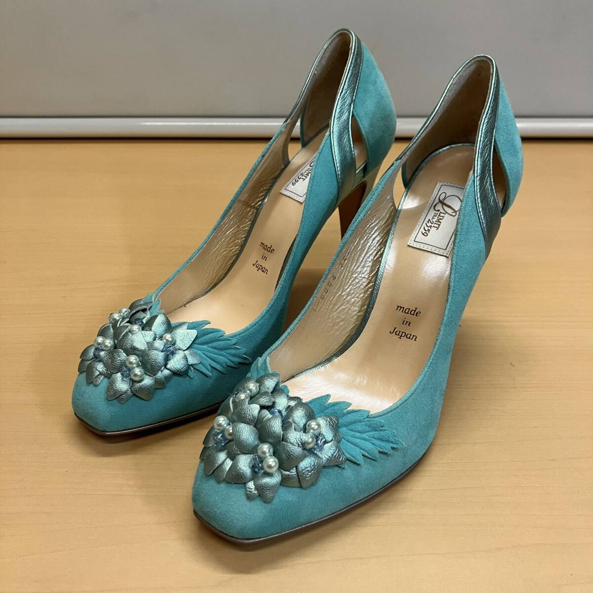 - Limit till 2359 ラウンドトゥフラワーモチーフピンヒールパンプス(ターコイズブルー系)24.5