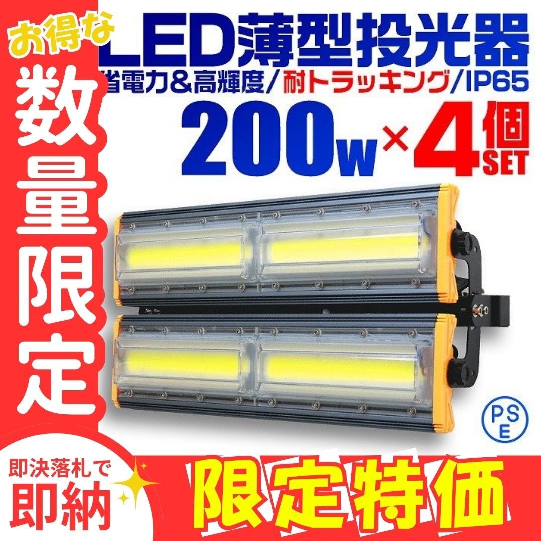 - 限定セール【4個セット】LED投光器 200W 屋外 防水 作業灯 防犯 ワークライト 看板照明 昼光色 アース付 3m ケーブル コンセント付 PSE