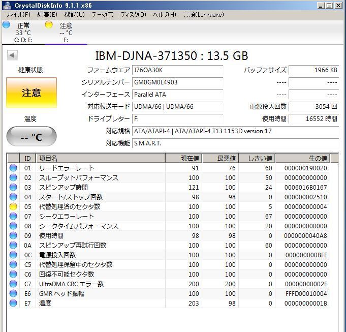 - [ジャンク][簡易チェックのみ] IBM IBM-DJNA-371350 13.5GB IDE HDD [2442]