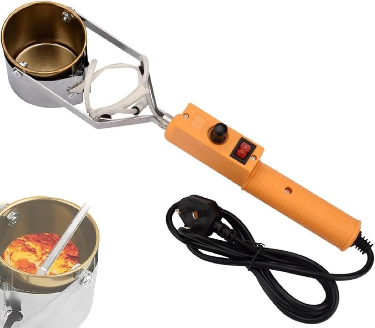 > 電気はんだ炉、鋳造錫用ハンドル付きポータブル鉛るつぼ、容量1100g&深さ65mmるつぼ、温度範囲200-450℃ DIYメタルペンダント用
