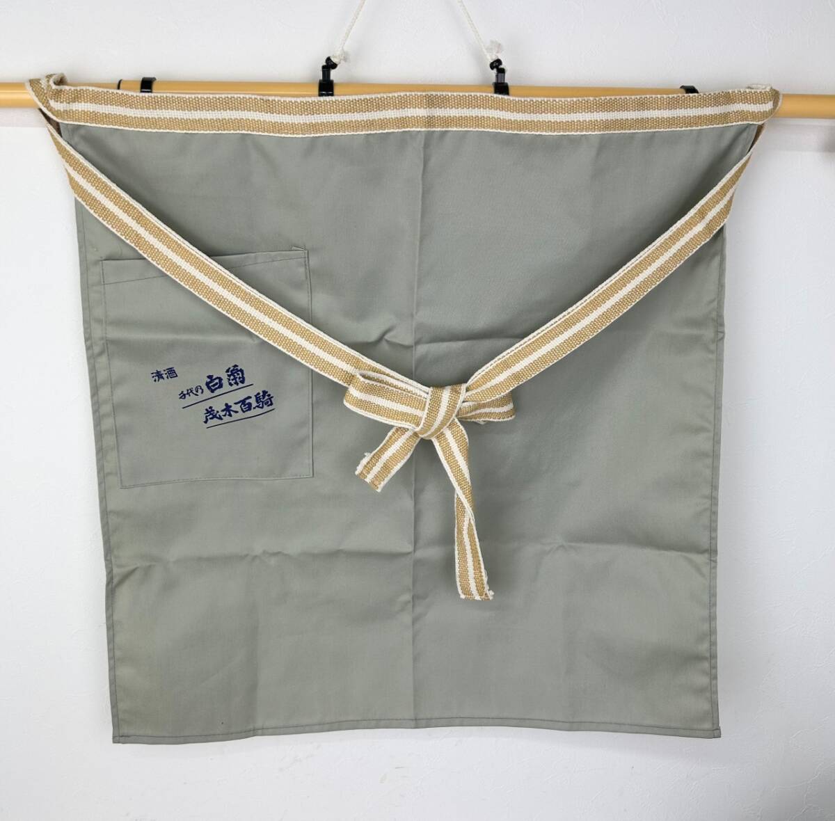 - ☆★☆未使用品 腰前掛け 清酒 千代の白菊 茂木百騎 エプロン ポケット付き 薄鶯色☆★☆